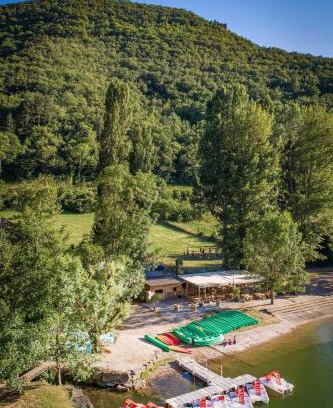 Camping de la Base Nautique enjoys a location in Saint-Rome-de-Tarn, 13 miles from Millau Train Station and 20 miles from Millau Bridge. This beachfront property offers access to a terrace and free private parking. When staying at the campground, guests can use private entrance. At the campground, every unit comes with a wardrobe, a flat-screen TV, a private bathroom, and bed linen. A fridge, a stovetop, and kitchenware are also available, as well as a coffee machine. At the campground, units have a seating area. Guests are welcome to eat at the on-site family-friendly restaurant, which is open for dinner, lunch, cocktails, and high tea. Guests at Camping de la Base Nautique can enjoy tennis on-site, or go cycling or walking tours in the surrounding area. Sylvanes Abbey is 25 miles from the accommodation, while Roquefort-sur-Soulzon is 10 miles from the property. Rodez - Aveyron Airport is 45 miles away.