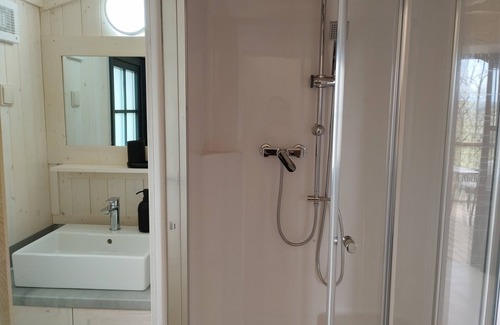 Camping Domaine de Senaud offers 17 accommodations. Bathrooms include showers with rainfall showerheads.