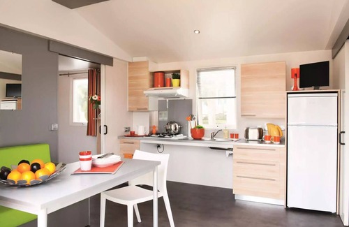 You will appreciate the campsite's infrastructure : children's play area, ping-pong tables, pétanque court, outdoor fitness area, educational garden, collective barbecue, restaurant, bar, brasserie, indoor and outdoor water park, slide (included in the rates). ), wellness area, sauna, jacuzzi, hammam (extra charge), laundry (extra charge),…