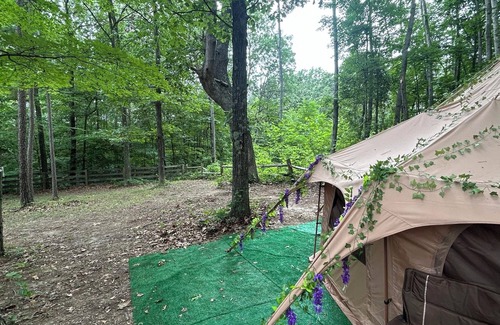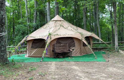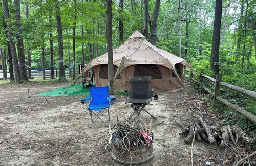 Come and enjoy the camping season without the hassle of breaking camp and packing the truck or car here you have privacy real Twin XL Beds ,Internet, A working mini fridge and flatscreen TV, It makes the perfect getaway for a family or a romantic evening , Relaxing in the hammock just outside and have a campfire