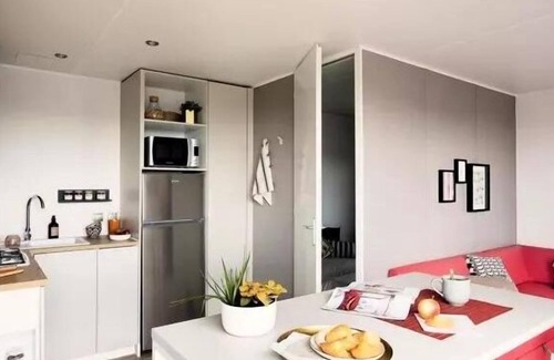Camping L'Escapade * - Mobile home Pacific 25m2 (2 bedrooms) + covered terrace 4 people is located in Cahagnolles. Camping L'Escapade * - Mobile home Pacific 25m2 (2 bedrooms) + covered terrace 4 people provides accommodation, featuring Child Friendly, Kitchen, Pool, among other amenities. This House features Child Friendly, Kitchen, Pool, to make your stay a comfortable one.