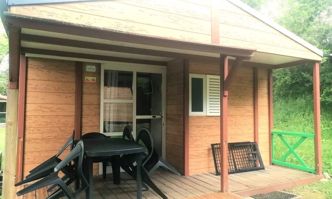 Accommodation: With its fully renovated interior, this small chalet will bring the ideal comfort to your holiday! It consists of 2 bedrooms, an equipped kitchen, a living room with bench, TV and air conditioning, bathroom with toilet and a covered terrace.