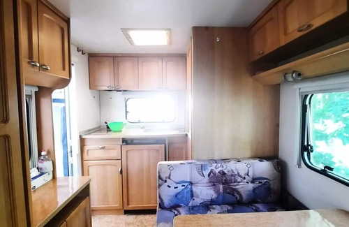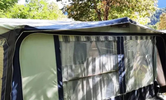 Accommodation: Without water or sanitary in the caravan composed of 1 double bed in 140 and 1 double bed in the annex under the awning. Seat and table inside, kitchenette with gas hob, hood, top fridge, microwave, coffee maker, dishes and kitchen utensils. Large closed awning. Television. Table and garden chairs and relax.Cats are not accepted in rental. Dog accepted.