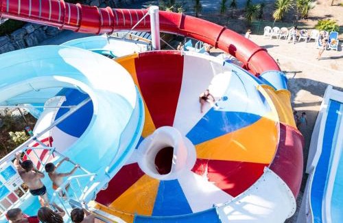 With Plage du Casino reachable in 1.2 miles, Camping La Vallée - Roan provides accommodations, a restaurant, a seasonal outdoor swimming pool, a garden, and a bar. The property is around 3.3 miles from Cabourg Casino, 3.5 miles from Cabourg Racecourse, and 7.6 miles from Deauville Racecourse. Featuring a private entrance, the campground allows guests their privacy. The units at the campground come with air conditioning, a seating area, a flat-screen TV with satellite channels, a kitchen, a dining area, and a private bathroom with a shower. A dishwasher, a microwave, and fridge are also provided, as well as a coffee machine and a kettle. The rooms are equipped with heating facilities. A mini-market is available at the campground. You can play table tennis at the campground, and bike rental is available. A water park and kids pool are available at Camping La Vallée - Roan, while guests can also relax on the sun terrace. Deauville Casino is 8.5 miles from the accommodation, while Promenade des Planches is 8.7 miles away. The nearest airport is Deauville - Normandie Airport, 14 miles from Camping La Vallée - Roan.