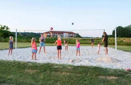 Residence: The Director's Word: Welcome to this exceptional natural setting, where family spirit, animation and conviviality promise you unforgettable holidays.The Campsite Château de Galaure benefits from aquatic space which ensures fun and relaxation throughout the season: - 1 Outdoor swimming pool (unheated)- 1 Outdoor heated pool- 1 Paddling pool- 1 Artificial lagoon- 3 Water slideYou can also find everything you need to relax: - Solarium - terrace- TransatesYou will enjoy your holidays!Many activities are available on site: - Aquagym- Petanque- Ping-pong- Football- Volleyball- Fishing- Skate-park- PlaygroundsBadminton- Zumba- Tennis (surcharge)- Baby Foot (extra charge)And close to the site: - Fitness room- Equation- Golf- Skate-park- Climbing- Kayak canoe- Fishing- Pedal boatYou won't get bored!Many animations You'll be able to enjoy your holidays. Daytime: - Sports competitionsIn the evening: - Show- Theme evening- Karaoke.Get ready for a sporty and fun holiday!Children will have fun and enjoy the activities offered by the clubs on site: - Children's Club (4-12 years)- Teen club (13-17 years old)Multiple services practices are proposed. To eat: Bar- Snack.- Takeout dishes- Pizzeria- Restaurant- Bread depot- SupermarketAvailable: - Bed linen rental (surcharge)- Towel rental (surcharge)- Baby kit (highchair, bed, bathtub...)- Iron (extra charge)- Laundry (extra charge)- One authorized dog (excluding 1st and 2nd cat.) (extra charge)- Barbecue gas permitted- Bicycle / ATV rental (surcharge)- Drainage areaOther information: Languages spoken at the reception: English