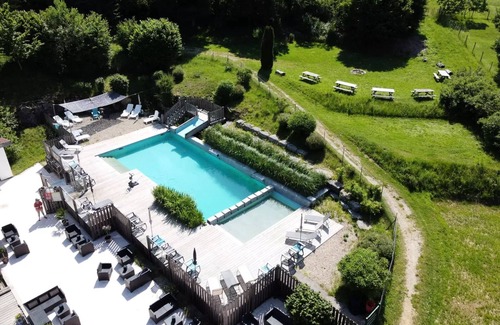 Information welcomeGroup receptionMotorhome pitchesAnimals acceptedrentallocationdogcatLanguages spokenFrenchEnglishGermanSituationVillageOutside villageDistance (km): 1.5Nearby:riverDistance in km: 0.5lake swimmingDistance in km : 40InfrastructureCatering infrastructureBar (- H.Season alone.)Snack (- H.Season alone.)Health infrastructureCommon sanitary units: 2separated man/womanShowersWCChildren ' s healthWashbasinsWaste waterHousehold equipmentGroup laundryDryingLeisure equipmentTelevision showMaximum number of persons : 15WifiFreePartial coverageBicycle rental service (- H.Season alone.)TradeShops (Distance: 2 km )EpiceriaChildrenOutdoor play areaSwing : 1Toboggan : 1Trampoline: 2Board gamesPoolsSwimming pool : 1Sports infrastructureBoulodromeBase of canoe kayak (Distance : 2 km )Climbing (varappe) (Distance: 2 km )Hiking TrailMarked trailsLeisure infrastructureCinema (Distance: 2 km )Library (Distance: 2 km )Discotheque (Distance: 25 km )Theme park (Distance: 15 km )Zoo – animal park (Distance: 25 km )Mini-farm (Distance: 20 km )Infrastructure WelfareThermal establishment (Distance: 35 km )ServicesCatering servicesTakeout dishes (- H.Season alone.)Deposit of bread (- H.Season alone.)Deposit of pastries (- H.Season alone.)Child servicesChildren's Club (- H.Season alone.)freeMinimum age: 6Maximum age: 10Tourism / LogisticsTourist informationTourist documentationBooking excursionsSilver point (Distance: 2 km )Mail pointIce repositoryActivitiesSports activitiesFishing (Distance: 2 km )Canoeing - Kayak (Distance: 2 km )Ping-PongBaby football Mountain bikingEquitation (Distance: 5 km )Climbing (Distance: 5 km )PetancaHikingAdventure course (Distance : 3 km )Speleology (Distance: 5 km )Alpine skiing (Distance: 40 km )Cross-country skiing (Distance: 30 km )