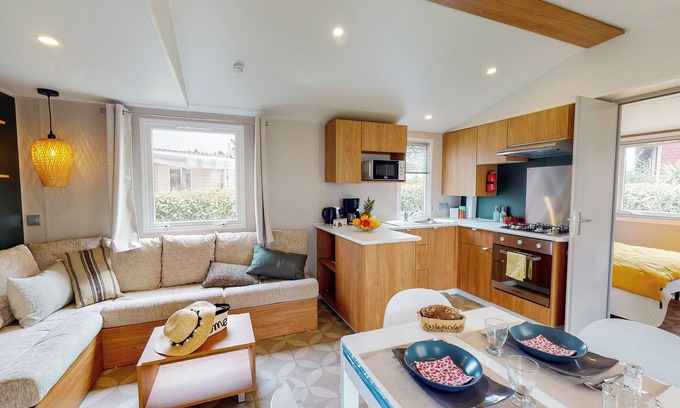 Air-conditioned accommodations at Camping Le Marisol 5* Torreilles Plage offer coffee/tea makers. Kitchens offer refrigerators, stovetops, microwaves, and cookware/dishes/utensils. Bathrooms include bathtubs or showers.