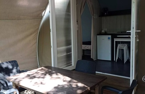 GeneralSituationNeighbourhoodcalmViewcampaign Sanitary closeFurther informationSmoking accommodation: noAccommodation GlampingAnimalsAnimals: accepted under conditionswith supplementon requestcompulsory vaccination bookletkept on a leashCatDog of 1st class prohibitedDog of 2nd category prohibitedRooms & BeddingsSeparate rooms : 2Separate roomsBed 1 person : 2Dimensions: 80 x 190Separate roomsBed 2 persons : 1BeddingBedding adapted to the number of personsSheets: not providedsupplementPillows: providedTraversins: not providedCovers: providedDuvets: not provided: Duvets: providedKitchenKitchen : 1in stayequippeddishes/covers adapted to the number of personsKitchen equipmentMicrowave : 1Refrigerator : 1No sinkTablewareFlat plates: 4Knives: 4Ranges: 4Soup spoons: 4Small spoons : 4Wooden spatula : 1Range covered: 1Bols: 4Coffee cups / saucers : 4Glasses: 4Wine glasses : 4Layer: 1Open box: 1corkscrew decapsulator : 1Course: 1Gateway: 1Cutting board : 1Salt / pepper : 1Pichet : 1Saladers: 1Casseroles: 1Stoves : 1Dessous de plat : 1Kitchen cornerHealth facilitiesWC : 1separated from the bathroomdry toiletNo bathroomInterior equipmentThermal installationNo air conditioning Multimedia equipmentWifi CollectivefreeWifi areaElectrical equipmentEuropean takeExternal equipmentTerrace : 1Barbecuecollectivenot providedGarden tableGarden chairsParasolExpensesWaterincludedHigh seasonLow seasonElectricityincludedHigh seasonLow seasonGasincludedHigh seasonLow seasonHeatingincludedHigh seasonLow season