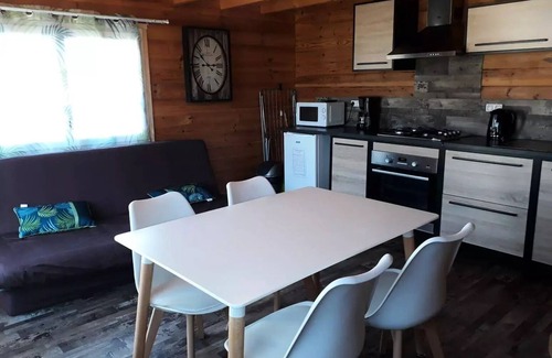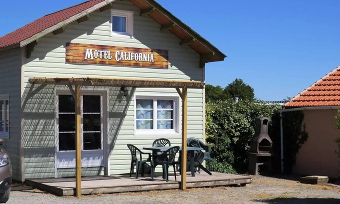 Accommodation: Come and stay in the world of Motel California chalet, rental for 4/6 people. All equipped: kitchen, bathroom with shower and toilet, TV, barbecue, Terrace with garden furniture (see inventory) Composition: 2 bedrooms upstairs: 1 bed 140, 2 beds 90 and a clac of 140 in the living room.