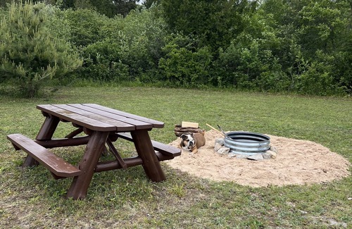 5 minutes to downtown Petoskey and Lake Michigan . great food and shopping. situated on bear river, must be self contained, includes garbage removal, has a shared shower house with full amenities, no power or sewage hook up in camping area. canoe kayak and paddle board rentals a few minutes away- or bring your own. 5 campsites available,Whispering pines : tent or small camper- Rabbit Run: tent or small camper, Little Bear Bend large camper or tents, Fern Gully, Rivers Edge.these are very spacious lots . Grills ,fire rings and picnic tables at each site. Available May-October.water available at barn, see your host also port o john on perfect for small campers or tents