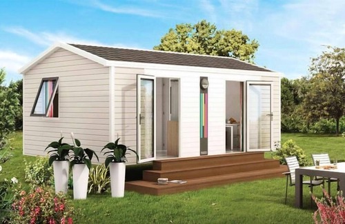 Mobile home 2 rooms 2 people of 23m ², composed of a living room with kitchen, a sitting area with sofa bed (140 * 190), a bedroom with 1 double bed, a bathroom with Separate WC and a terrace of 18m².