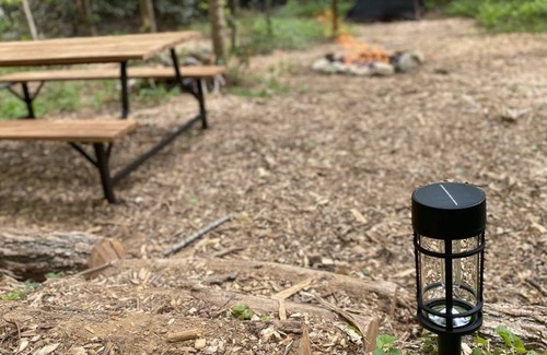 Spacious campsite next to Cold Spring Branch. Park in the upper lot and follow the trail with your gear in our wagon to creek and campsite. The locust log steps take you down to the picnic table and fire ring and the tent pads are cozied up next to the creek. There are at least two tent pad areas and lots of shade.Enjoy your morning coffee or evening cocktail with the rhododendron bushes overhanging your seat next to the creek. Bike our purpose built mountain bike trails, hike to the waterfall, road bike world class loops from the property, or venture to Rock Creek and Kanuga bike parks, Dupont State Forest or the quaint friendly towns of Saluda, Flat Rock and Hendersonville.