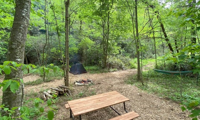 Campsite 2 - Creekside on 38 acres- biking and hiking trails | RV Rental in Zirconia