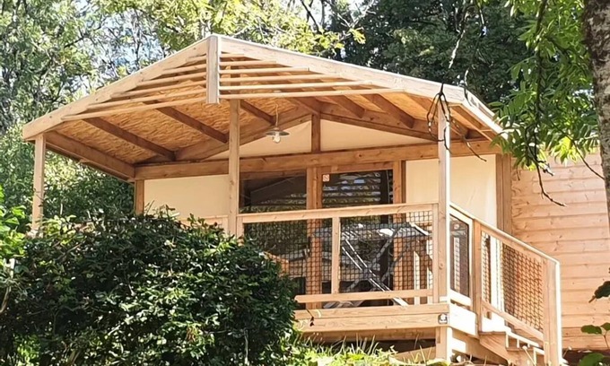 Accommodation: For your holidays get high thanks to our Carrelet, mi canvas mi bois, on stilts!With a partial view of the river.GeneralAreasTotal area (m2) : 28Old ageYear of rental : 2023SituationNeighbourhoodcalmterrace by small neighborhoodViewcampaign riverFurther informationSmoking accommodation: noDisabled access: noAccommodation GlampingAnimalsAnimals: accepted under conditionswith supplementcompulsory vaccination bookletkept on a leashDogCatDog of 1st class prohibitedDog of 2nd category prohibitedRooms & BeddingsSeparate rooms : 2Separate roomsBed 2 persons : 1Dimensions : 160 x 190Separate roomsBed 1 person : 3Dimensions: 70 x 190Type of bedSuperimposedGigogneChild / BabyUmbrella bed : 1supplementon requestBeddingSheets: not provided: Sheets: providedPillows: providedDuvets: providedMattress protectorsKitchenKitchen : 1Kitchen cornerdishes/covers adapted to the number of personsKitchen equipmentCold waterHot waterSink: 1Refrigerator / Freezer : 1Microwave : 1Electric coffee maker : 1Cooking plates : 2 lights : 1Health facilitiesBathroom(s) : 1FamilyShowerWashbasinBath linen: not providedWC : 1in the bathroomInterior equipmentThermal installationNo air conditioning FanExternal equipmentTerrace : 1coveredBarbecuenot providedauthorizedgasCoalNon-electricBarbecuecollectiveCoal Garden furnitureExpensesWaterincludedElectricityincludedGasincludedHeatingincluded