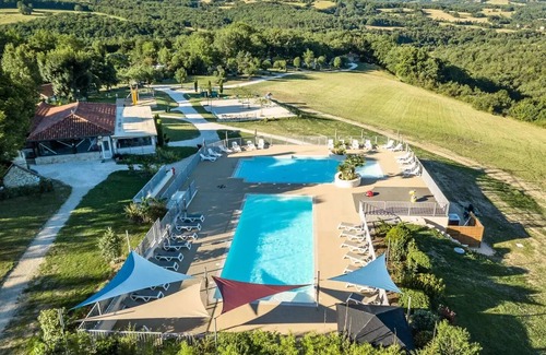 Residence: You are looking for the ideal campsite for your next family stay in the Lot ?Welcome toCampsite Domaine de la Faurie****,nestled on a hill in Quercy country with an indefinite blue and green horizon, our team welcomes you in a refined and magical setting.Enjoy theaquatic space which awaits you with a large heated pool for swimming, another pool for relaxation in a balneo or under a fountain and, a small paddling pool accompanied by a play area dedicated to toddlers.The campsite is characterized by its calm and its landscapes, the activities are not a main attraction.Every 15 days go to the evenings Concert or Giant Games: Everyone finds themselves around the restaurant, dancing to the rhythm of the music groups or playing with the family with "La Bateleuse".For the smallest, many animations are present: atelier construction jeux en bois, atelier explorer, atelier art pariétal, theatrical expression.Many leisure infrastructure and facilities are at your disposal on site: petanque field, badminton field, table tennis tables, relaxation session, giant werewolf.Side services*, guests can eat at the snack restaurant and order breakfast.But also at your disposal: grocery store, laundry, possibility to rent bicycles, free Wi-Fi available (bar, petanque court, swimming pool, barbecue area)...*Some activities and services are in addition, rates and regulations on site