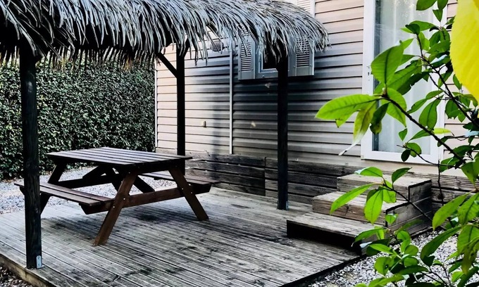 - Chalet in campingWell placed quietly, next to the pool, beautiful terrace in the shade