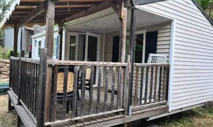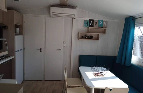Accommodation: Mobil-home Louisiana Air-conditioned 4 people Composed of 2 bedrooms: 1 bedroom with 1 double bed of 160, 1 bedroom with 2 beds, a living room, equipped kitchen (gas hob, refrigerator, microwave, coffee maker, toaster, TV, dishes), a bathroom with shower and sink, a separate toilet, a garden furniture. Covers and pillows are provided. Sheets not provided.