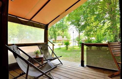 Accommodation: Want to get back to the essentials? Accommodation Unusual and comfortable, the Victoria lodge is equipped with 2 bedrooms with kitchenette and bathroom, the ideal solution for a family holiday in tent. Guests can enjoy the sunny breakfasts on the garden lounge.