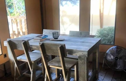 GeneralOld ageYear of rental : 2024Further informationSmoking accommodation: noDisabled access: noAccommodation GlampingAreasTotal area (m2) : 27AnimalsAnimals: accepted under conditionswith supplementDogcompulsory vaccination bookletkept on a leashCatDog of 1st class prohibitedDog of 2nd category prohibitedRooms & BeddingsSeparate rooms : 2Separate roomsBed 1 person : 2Dimensions: 80 x 190Type of bedSuperimposedSeparate roomsBed 2 persons : 1Dimensions : 160 x 190BeddingSheets: not providedPillows: providedCovers: providedMattress protectorsBedding adapted to the number of personsKitchenKitchen : 1in stayequippeddishes/covers adapted to the number of personsKitchen equipmentCold waterHot waterSink: 1Cooking plates : 4 lights : 1Microwave : 1Refrigerator : 1Kettle: 1Piston coffee maker : 1Health facilitiesBathroom(s) : 1ShowerWashbasinPrivateWC : 1in the bathroomBath linen: not providedExternal equipmentTerrace : 1Semi-coveredGarden furnitureGarden table