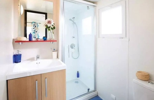 Details: City center access : 500 m Beach Access : 35000 m Wi-Fi access : free throughout the campsite Accessible by train : Pontorson-Mont-St-Michel (1.3 km) Home bike Playground for children : outdoor games - trampoline - 2 new inflatable structures Children's animation : Free kids club from 4 to 14 years old - in July/August Family animations : free - July/August Sports animations : in July/August - free Pets allowed : 3€ / animal / day - 2 per accommodation maximum - category 1 and 2 dogs prohibited - to be paid on site Internet terminal : at the bar Deposit (in supplement) : 350 Children's club temporarily closed Blankets and pillows temporarily not provided Lake / river distance : 20 m Grocery store : convenience store - bread and pastries available throughout the season Horse riding : near Final cleaning fee : 70€ / accommodation - to be paid on site Golf Jacuzzi : extra charge - free access during opening hours (to be consulted on site) - see price and regulations on site Baby Kit : bed + high chair + bathtub: €15 - to be paid on site Laundromat : washing machine €5 and dryer €4 - to be paid on site Towels : 9.90€ / person - to be paid on site Sheets rental : pillowcases + sheets: double bed set: €15 / single bed set €12 - to be paid on site Number of stars : 3 Car park : 1 vehicle per accommodation - free parking on the campsite Sin : near bowling Ping Pong : Yes Swimming pool : 150m² - heated exterior - open from May 1 to September 30 (see opening hours on site) Possibility of bike rental : extra - 10€/5h and 15€/day - 1€/helmet - to be paid on site Close trade : 500m Hiking Restaurant : bar - open from March to October Game room : games - billiards - library Sauna : 7€ / 1/2 hour and 10€ / hour - free access from 5 p.m. to 6:30 p.m. - open from 10 a.m. to 6:30 p.m. - to be paid on site Breakfast service : 6.50€/person - to be paid on site Tourist tax (surcharge) : 0.55€ / day / person - free for under-18s - to be paid on site Multisports ground : Yes Surface (m²) : 18 Number of pieces : 2 Number of bedrooms : 1 Number of bathroom : 1 Cooked Microwave oven Terrace Barbecue Number of toilets : 1 Television Freezer Pets Allowed : With supplement - Tenus on leash Fridge