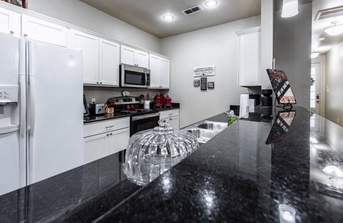 Beautiful newly constructed 3-bedroom 3-bathroom home located within walking distance of Texas Tech University's campus and football stadium. It has a fully stocked kitchen, dining area, and spacious living room. Enjoy the beautiful neighborhood or relax indoors with free Wi-Fi and smart TV.
