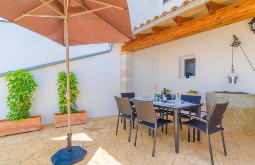 In this beautiful and comfortable house you will enjoy the peace of being in the outskirts of an interior village but with all comforts. Outside you can refresh in the beautiful swimming pool sizing 5 x 3 metres and with a 1.5 metres depth. After the dip, nothing like sunbathing on one of the sunbeds or having a drink under the porch while cooking the barbecue. By the house entrance there is another sitting area to have lunch or dinner with your loved ones enjoying the amazing Majorcan weather. The property is within the village and it has direct neighbours. The 130 m2 two storey house has been restored so that you will enjoy all comforts during your stay. In the living room you can have a rest on one of the sofas, watch TV or take a little siesta. Then the dining area suitable for 4 people. Finally the kitchen, basically equipped to cook during your vacation, including a ceramic hob, a dishwasher and a little table for morning breakfasts. The laundry is located by the kitchen and it features a washing machine, an iron and an ironing board. Two of the three bedrooms are also on the ground floor. One with a double be and the other with twin beds, and both with a fan and a closet. Two bathrooms complete this floor, one with a shower and the other with a bathtub, for the whole accommodation. Going upstairs you will find the last twin bedroom which also presents a fan and a closet. If you are travelling with a baby, we can prepare a cot and a high chair too. The house is located in the village of Algaida, where you will find all basic services for an independent stay: supermarkets, shops, bars and traditional food restaurants. You can visit the Can Gordiola glassworks, or reach the Puig de Randa and admire some beautiful views over the island. El Arenal is the nearest beach, with all services and a great atmosphere. If you love practising golf, the nearest course is only 13.6 km away. Note: We cannot accept guests under 30 years unless you are a family. We need copies of the passports of all guests in order to accept the booking. Consult the advertiser for possible charges. Pets are not allowed. The holding of events is forbidden. There are parking space for 1 cars in the garage. Distances Beach: 17.9 km - Plajta de s'Arenal, Palma Airport: 18.2 km - Son Sant Joan, Palma Golf course: 13.6 km - Golf Son Gual, Palma Town: 0.001 km - Algaida Train station: 21 km - Parc de les Estacions, Palma Bus stop: 0.400 km - Crta Manacor, Algaida Ferry: 24.4 km - Port de Palma Hospital: 17.5 km - Hospital Son Llàtzer, Palma Tourist license: ETV/8477Single Rental Registry: ESFCTU00000702500017780700000000000000000000ETV/84778,There's a mandatory tourist tax in Balearic Islands, called Ecotasa. All guests, except people under 16 years, have to pay this tax. The amount varies between 0.55€/night and guest during the low season and 2.2€/night and guest during the high season .The tax is reduced by half from the 9th day for your stay.