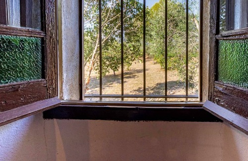Patio with the charm of old traditional stone houses. The ground is stone, but there is a space with sun-loungers and a small pool where guests can enjoy the sun during the summer months. It is surrounded with trees including a lemon tree which adds a special green touch. Ideal place to relax and enjoy the beautiful countryside surrounding the house and the lovely sunsets.