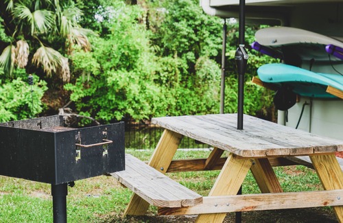 The space is a permanently placed cottage style travel trailer, in a park like setting, with resort style amenities, on our quiet canal front property. A beautiful and peaceful spot with views that will take you back to old Florida. The canal is great for canoe rides and kayak trips and is teaming with wildlife! You can expect to see our resident alligators (3'-5'), turtles, hummingbirds, Sand hill cranes, and an abundance of fresh water carp. Inside you will find all comforts you could want.