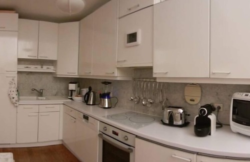 This apartment has all the comforts: kitchen (oven and microwave, plate hob induction, dishwasher, washing machine and dry linen, refrigerator and freezer, Nespresso coffeemaker); dining room can accommodate up to 6 people, room with a large bed (160 x 200) equipped with two electric relaxation bed; lounge chairs Stressless relaxation and a sofa bed for two people sleeping.