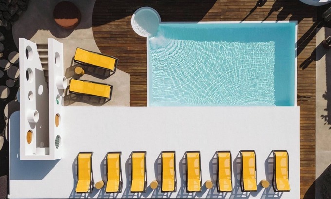 The exterior is dominated by the classic materials used on the island, lava stone, whitewashed surfaces, wood and details in the green of Lanzarote. These materials are also used in the construction of interior spaces, but in the interior architectural design emphasis has been placed on sensual and colorful materials that allow the user to immerse themselves in a world of different color in each room.