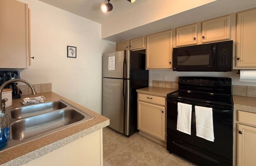 From the moment you arrive at Candlewood Loft, you'll feel completely at home. Tucked into a quiet, well-kept complex in central Boise, the condo welcomes with soft, creamy tones, fresh carpet underfoot, and that cozy, comforting feel you get when a space is designed eloquently with care. After a long day on the road, park easily in the covered spot directly in front of the unit. Step inside, and immediately sank into the large leather couch in the living room — it is the kind of couch you don’t want to leave.