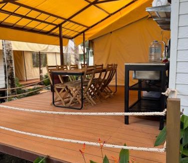 Canopy Villa Cay Sao offers accommodations in Phú Quốc, 12 miles from Sung Hung Pagoda and 23 miles from Corona Casino. Both free Wifi and parking on-site are available at the luxury tent free of charge. Phu Quoc Prison is 10 miles from the luxury tent, and Coi Nguon Museum is 11 miles away. At the luxury tent, the units come with a private bathroom. Guests at Canopy Villa Cay Sao can enjoy a buffet breakfast. Guests can also relax in the garden. Vinpearl Land Phu Quoc is 23 miles from the accommodation, while Suoi Tranh Waterfall is 6.3 miles away. Phu Quoc International Airport is 9.3 miles from the property.