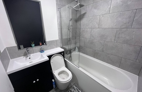 Full size bathtub with shower. One double bed and one guest bed which extends to king size. Plenty of local turist attractions to keep you busy and in love. Very quiet village with on street light and free parking.