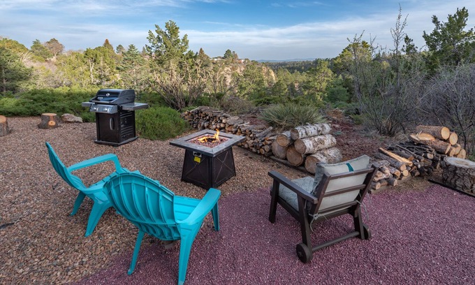 You will have a large part of the yard to yourself. Most of it is flat terrain - it could serve as a playground for kids or hangout space for adults. You will be amazed by the depth of the canyon below and the mountain on the opposite side. However, the yard is not fenced and younger kids should be supervised by adults. Please make sure you do not go beyond the point where the terrain suddenly changes to steep rock cliff.