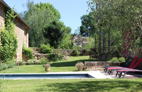 Quercy house of character, classified 4 stars (national classification of furnished tourism), clear and bright, well equipped, decorated with care. 5 spacious bedrooms, sleeps 12, 200 m2 in 3 levels, with wood burner in large fireplace, covered terrace, private garden of 1400 m2 with trees and flowers, private pool secured by alarm (9.5mx4.5m), bowling alley and large barn equipped with games room (ping-pong, table football, children's games, table with 8 chairs, low energy lighting), parking in front of the house.