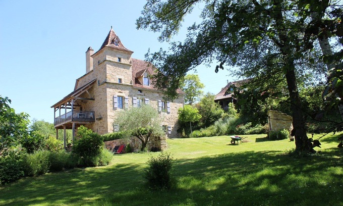 The house is located in the countryside (meadows, wood) in a hamlet overlooking the Lot Valley, east of Quercy.