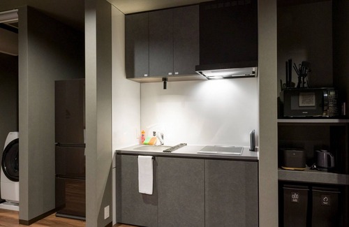 A kitchen washing machine and projector are available so you can stay like you live there The bedding is Airweave and the bath is a semiopenair bath no view