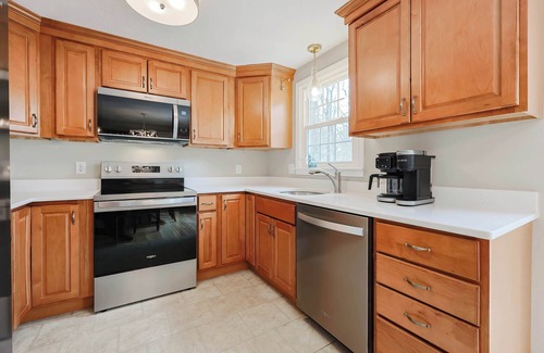 This beautifully updated Cape Cod getaway offers modern comfort with a classic coastal feel. Featuring two bedrooms—one with a king bed and another with two twin beds—plus a queen pullout couch in the living room, this home comfortably sleeps six. The full bathroom includes a tub/shower combo, and the kitchen is equipped with brand-new stainless steel appliances, a drip coffe maker and a dining table that seats six.