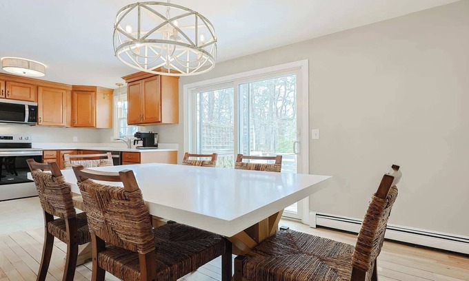 Enjoy a relaxing Cape Cod getaway in this beautifully updated home with water views. Sleeps up to six guests with a king bed, two twins, and a queen pullout. Features a modern kitchen, gas fireplace, and flat-screen TV. Outdoor perks include a new firepit, new deck and patio furniture, and a short walk to Mill Pond for kayaking. Just 2 miles to Grey’s Beach and 4 miles to Mayflower Beach. With a central location off historic 6A, it's perfect for exploring Cape Cod’s best attractions!