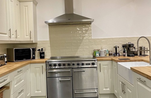 Step through the historic chapel doors into the centerpiece of the home, boasting impressive high ceilings and contemporary décor—a true gem awaiting your discovery. The fully equipped kitchen invites you to prepare delightful feasts, perfect for shared family moments. The kitchen island and breakfast bar provide a great social space for the chef, whilst formal meals can be hosted on the solid wood dining table that seats 12.