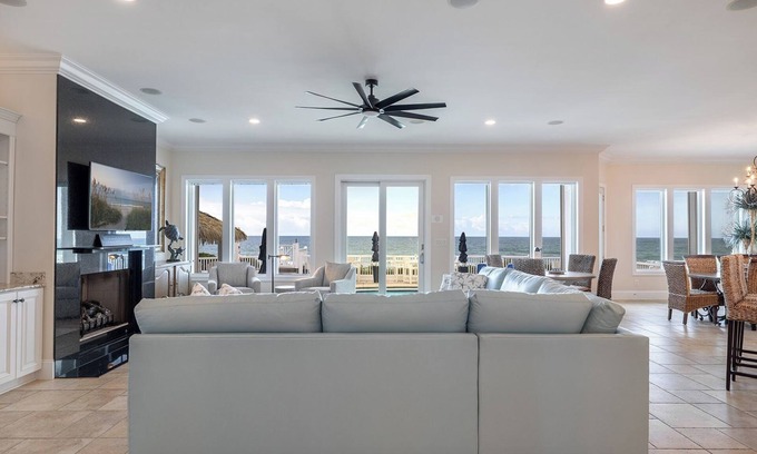 This 8 Bedroom,10 Bath Oceanfront Home sits just feet away from the Beautiful Atlantic Ocean! You can sink your toes in the sand and relax on the beach all day long and then walk only steps to your home! With every designer’s wish list in mind, no expense was spared when building and furnishing this blue pearl home. From the colors, to the top-of-the-line amenities, you’re sure to find everything you’re looking for and more at Caper's Castle!