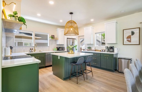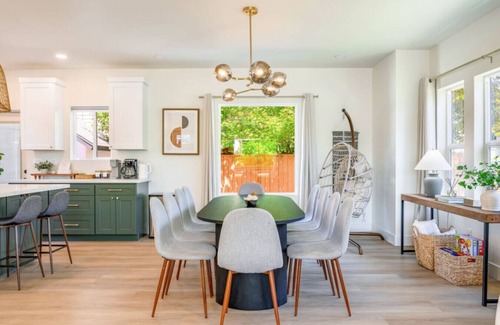 You will enjoy the new 2 kitchens, 4-bedroom retreat (3 queen beds, 2 bunk beds, and 1 sofa bed), completes with 3.5 elegant baths. This stylish home accommodates 11 guests. Enjoy AC, and a quiet and convenient location. You can relax in the backyard with string lights. Just 5 mins from all iconic attractions of Seattle, and easily savor the vibrant dining options in Capitol Hill!