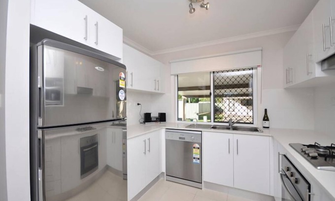 While you're here, you can enjoy all the comforts of home and more, including a full-sized refrigerator/freezer and an oven, as well as a stovetop and a dishwasher. Other amenities include premium bedding, laundry facilities, towels, and an electric kettle.