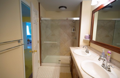 Local trails (Old Habron Gap, google it!) access the ridge of Massanutten Mountain within walking or you can drive the distance from Captain's Lodge on the Rapids! Some of the best single track switch back technical Mountain Biking are nearby. Luray Caverns is only 11 miles from Captain's Lodge on the Rapids; several other caverns are within driving distance. King bed in the Master Bedroom with customized newly renovated bathroom. The rate structure allows you to rent the Lodge exclusively with access to only what you need for your stay.
