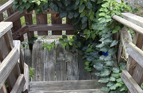 -upper level PORCH: 2chairs, wicker table