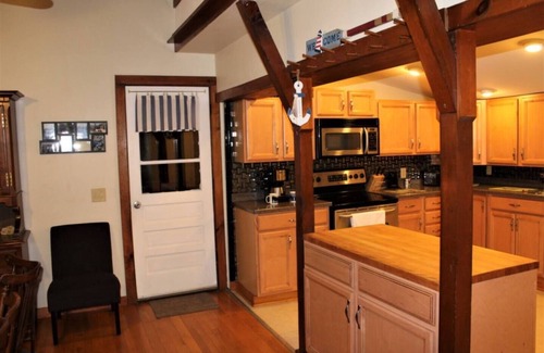 There are two separate units in this spacious home - This unit, Captain's Stateroom, which sleeps 6, and Captain's Quarters, which sleeps 4. They are self contained lock-off units with no indoor shared spaces. Each unit has its own kitchen, living area, bedrooms, bathroom and laundry facilities. The only shared spaces would be the front yard, and the waterfront area with 2 kayaks and the firepit. For a larger group, you can rent the entire house as Captain's Lookout. Please let us know if you need a link to find the listing.