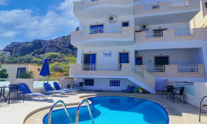 Yes, this Palaiochora apartment has a swimming pool. Check the Facility Overview section for details about the pool and other available facilities.