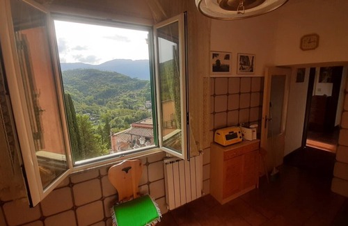 On the top floor of a two-story building, finely furnished. It includes one bedroom with a queen size bed, a living room with fireplace and sofa bed (queen size), a large fully equipped eat-in kitchen and a full bath. Accommodates up to four people. Autonomous heat and hot water. Spectacular views from each room and a very large roof top terrace. Ideal for those who are smart working or work remotely, writers, artists and people in search of inspiration or looking for adventure.