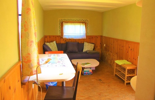 z. B .: 2 nights from € 40 (prices see "Check Availability") The different sized caravans are very simply furnished. The Non smoking rooms are equipped with bed, z. T. Cabinet / shelf, table and chair, some with mini-kitchen with no running water, with min. A window. The caravans are almost always built with natural materials. The 5 caravans have either 2 separate rooms or be used without inner walls as a space. All caravan except caravans 2 are equipped with electric heaters. A possibly needed cots can be provided by us. Shower and toilet are located in the mud house of Wangeliner garden, about 80 m Remove. The caravans are very close to the Wangeliner garden, herb garden largest in Mecklenburg-Vorpommern. As our guests have the option of only 1 entry to use the Wangeliner garden anytime. For self-catering is available from May on the grounds of Wangeliner garden a simply equipped summer kitchen. As it can get very dark here in the country, a flashlight is often of use. If booking for the same day, a phone call is required to ensure that a colleague is on site. Pets are not allowed.