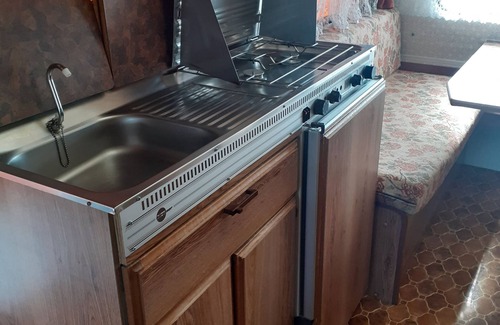Perfect for couples and solo travelers. A small living room equipped with two benches. A small kitchenette with cooking utensils to prepare a small meal to be enjoyed indoors or outdoors if you wish.
